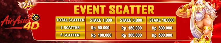 *STAKE SPIN MIN BET 1.000 - 4.999: 5 SCATTER - BONUS 50.000 6 SCATTER - BONUS 100.000 *STAKE SPIN MIN BET 5.000 - 9.999: 5 SCATTER - BONUS 150.000 6 SCATTER - BONUS 300.000 *STAKE SPIN MIN BET 10.000 - 99.999: 5 SCATTER - BONUS 300.000 6 SCATTER - BONUS 600.000 Syarat & Ketentuan : 1. Event Scatter Berlaku hanya pada provider Slot Pragmatic yang ada di menu utama Slot Pragmatic (Bukan dimenu SBO Slot & Games). 2. Minimal Stake SPIN Rp. 1.000,- 3. Event ini Khusus Untuk Jenis Slot PRAGMATIC Pada List Di Bawah Ini. - Gates of Olympus - Gates of Olympus 1000 - Gates of Olympus Dice - Starlight Princess - Starlight Princess 1000 - Starlight Christmas - Gates of Gatot Kaca - Gates of Gatot Kaca 1000 4. Event tidak berlaku jika claim dengan menggunakan fitur BUYSPIN/BELI SPIN. 5. Maksimal Per 1x claim Bonus Scatter Rp.333.333 Dan Maksimal Claim 3x Perhari, Maksimal Bonus Rp. 1.000.000 / Perhari.( PER 1 USER ID ) 6. Setelah Mendapatkan Scatter Wajib Langsung Screen Shoot Yang Menunjukkan Hasil Akhir Dari Total Kemenangan. (Screenshoot layar penuh / full screen dan tidak boleh ada editan) 7. Boleh Dimainkan Atau Tunggu Sampai Freespin Selesai ,Wajib Screenshoot Hasil akhir Total Kemenangan. 8. Diwajibkan posting Screenshoot hasil di Grup Official Facebook AIRASIA4D Disertai Username Dan Jenis Claim : Contoh : - Username = AIRASIA4D - jenis Claim = Event Scatter Maka Format Postingan Adalah Hasil SS Di Sertai Username Dan Jenis Claim AIRASIA4D Event Scatter 9. Klaim Bisa Dilakukan Melalui Admin LiveChat Official AIRASIA4D. 10. Event Scatter akan Di Reset Setiap Hari Pukul 00.00 WIB 11. Promo dapat berubah sewaktu-waktu tanpa pemberitahuan. 12. Jika ditemukan indikasi kecurangan, Management berhak membatalkan event tersebut dan menarik kembali bonus dan kemenangan, serta memberikan peringatan keras kepada user id yang telah melakukan kecurangan. 13. Event Tidak Berlaku Double Claim Dengan Event Yang Lain ( 1X Claim Hanya Untuk 1 Event ) 14. Keputusan Management AIRASIA4D bersifat Mutlak.